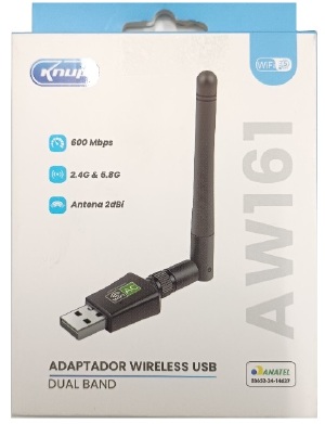 ADAPTADOR USB S/FIO DUAL BAND 2,4G E 5,8G + ANTENA KNUP AW-161
