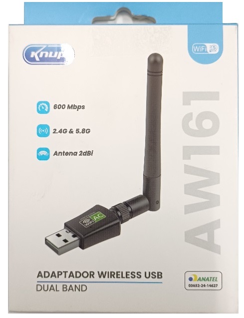 Adaptador KNUP KP-AW161 USB Wi-Fi 5G 600Mbps para conexao à Internet sem fio