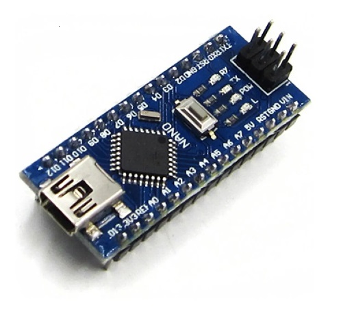 Este Arduino Nano V3.0 pode ser conectado diretamente em uma protoboard por meio de cabo USB.