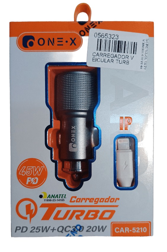 CARREGADOR VEICULAR TURBO 1USB + 1 USB TIPO-C + CABO IPHONE 5 CAR-5210