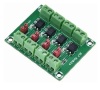 Modulo com 4 optoacopladores. Composto internamente por um led e um fototransistor/fotodiodo para transferir sinais elétricos entre duas etapas de um circuito que precisam ser isolados eletricamente.